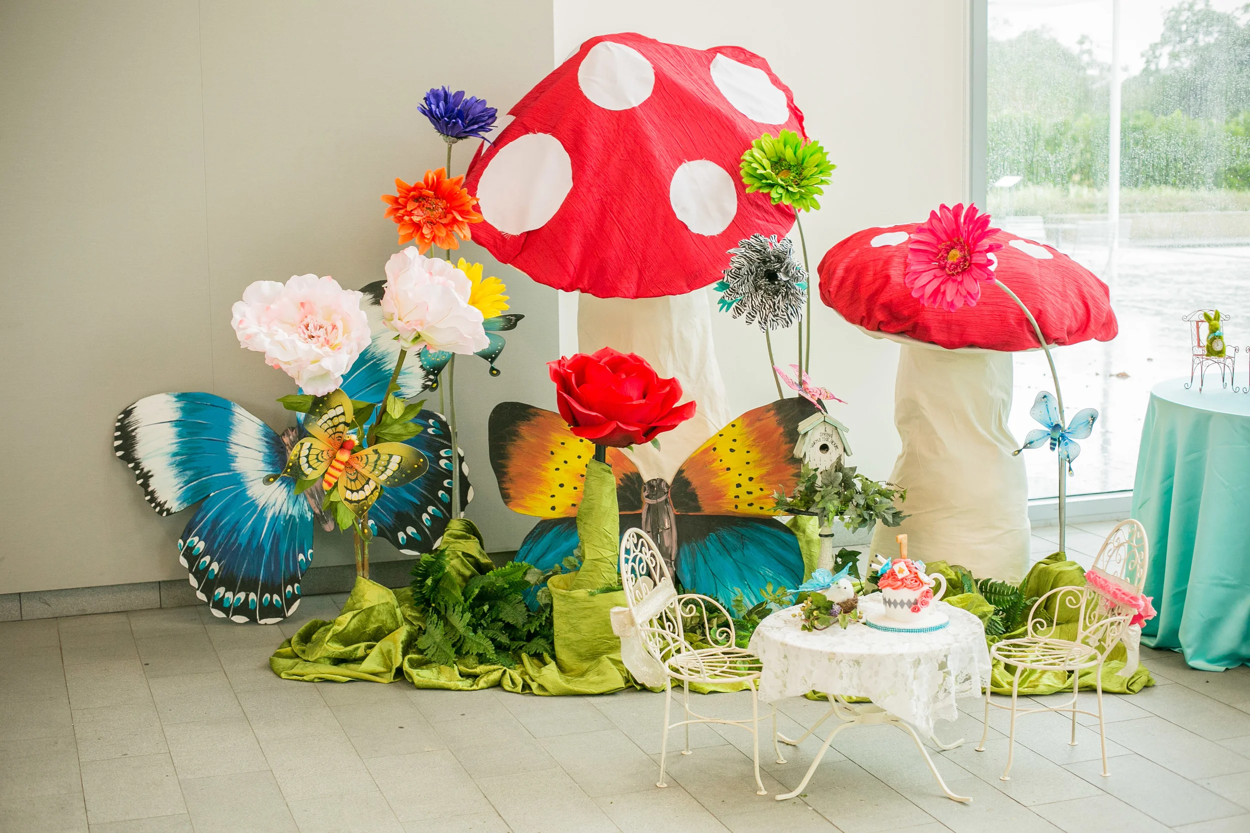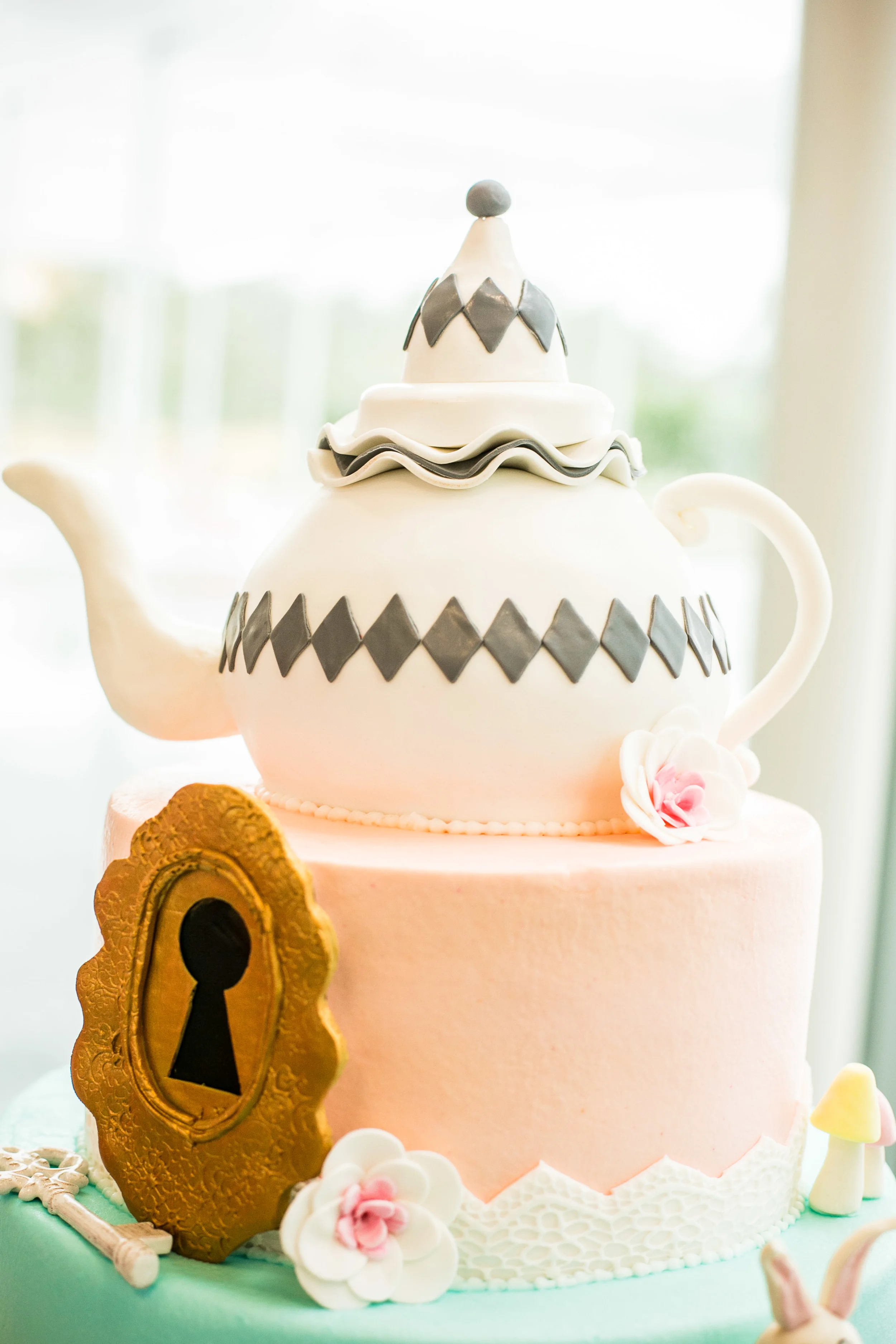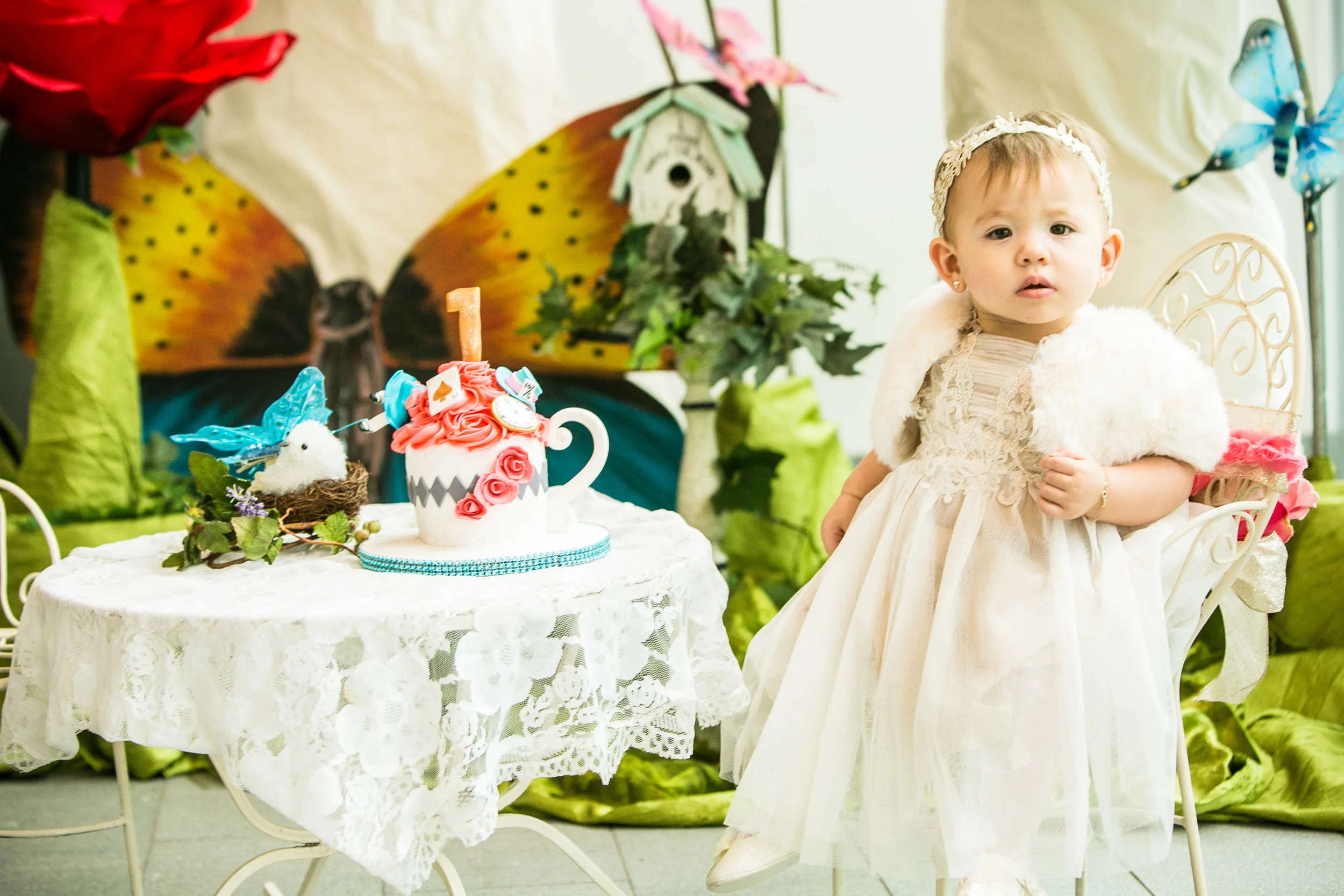 Rain storms crazier than the Mad Hatter couldn’t put a damper on this magical 1st Birthday party. Although originally designed for the outdoor boxwood and topiary-lined Celebration Garden in the Museum District, Mother Nature sent us down the rabbit hole and under cover where tea time carried on in grand style!